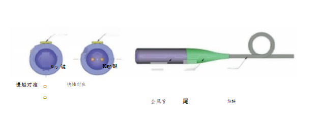 在制作保偏器件连接头时,猫眼的连接轴线方向和键槽纤芯连接线方向一致,也称为慢轴对 准,两线垂直时,为快轴对准。